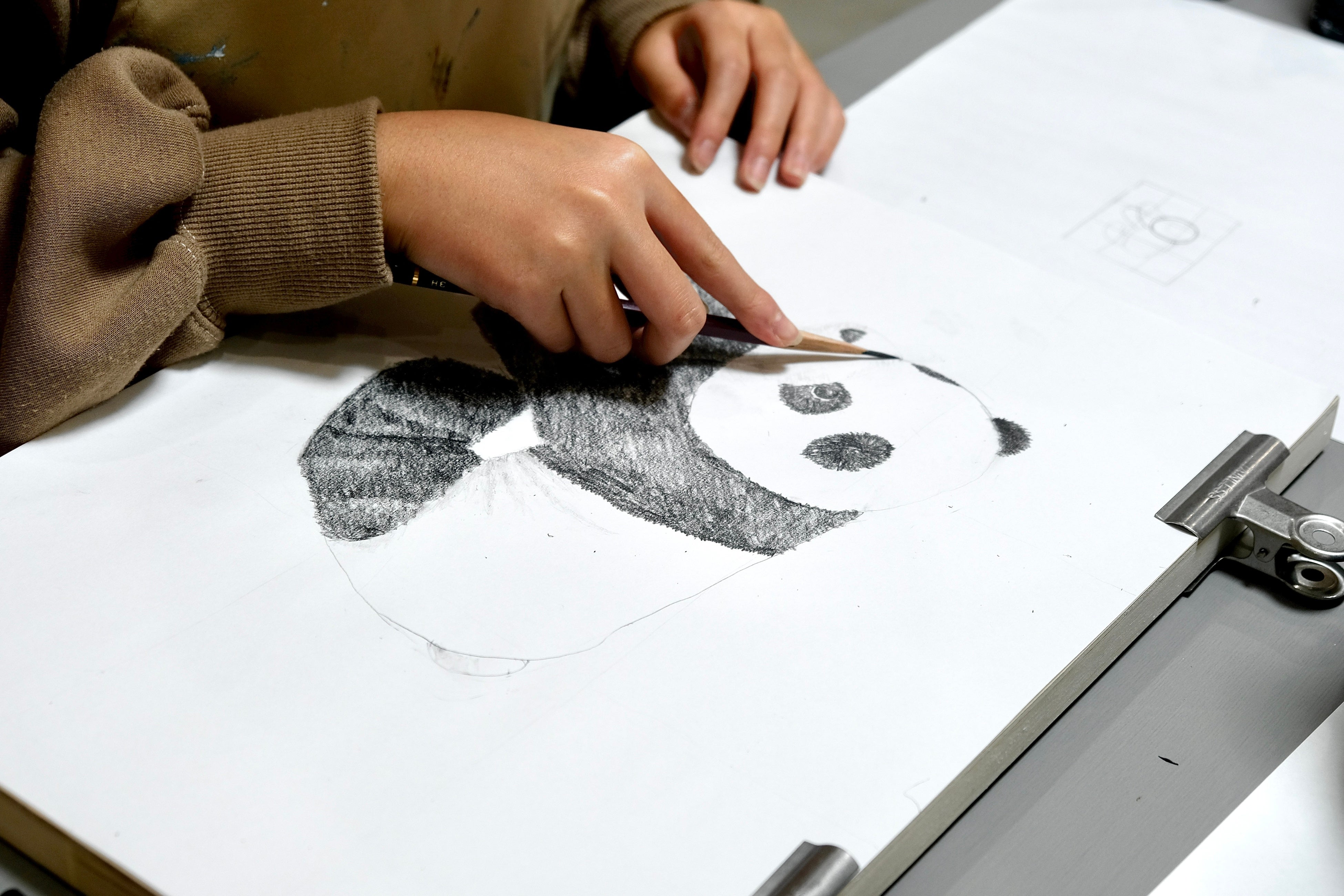 体験内容:技術クラス「パンダのデッサン」 / 受験対策コース「木の立方体」