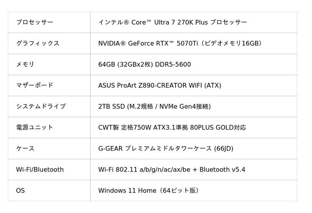 最新の「インテル(R) Core(TM) Ultra 7 270K Plus」を搭載