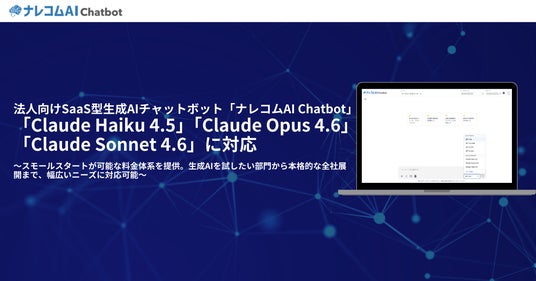 ナレコムAI Chatbotは、チャット、データ分析、社内文書検索等をワンプラットフォームで提供し、高いセキュリティ基準を備えた法人向け生成AIサービスです。今回のアップデートにより、ユーザーは用途に合わせて、より高速かつ高性能な最新のClaudeモデルを選択可能となり、業務効率化をさらに加速させることができます。
