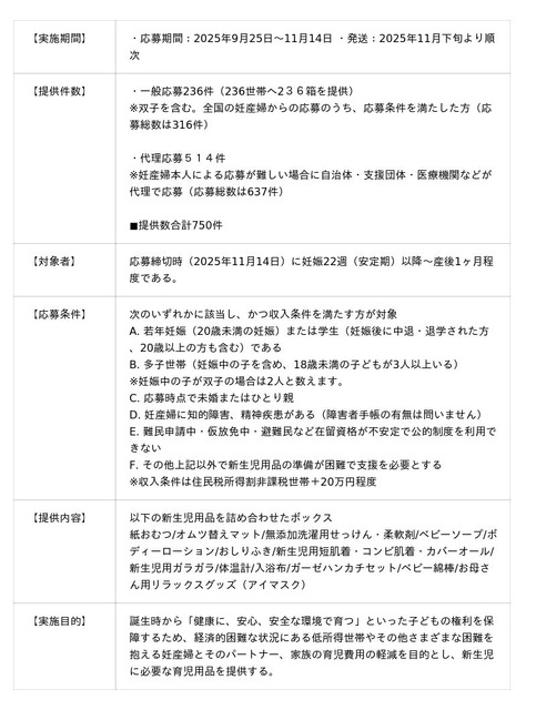 (「ハロー!ベビーボックス」2026年春は4月頃応募開始予定、詳細は近日当会ウェブサイトにて公開予定)