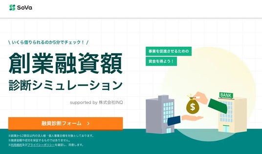 公式サイト:https://lp.virtual-sova.io/useful-column/いくら借りられるのか5分でチェック!「創業融資額診断シミュレーション」