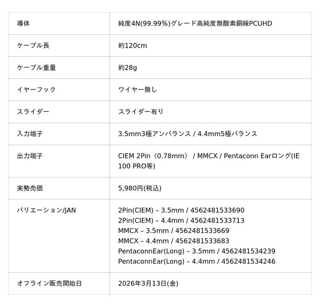 Nyxはハイグレード交換ケーブルとして新たに2026年からラインナップに加わったSoundsGoodの最新作です。BlueFlameを含む旧来製品の開発知見やユーザーからのフィードバックを活かし開発されたハイグレード製品です。