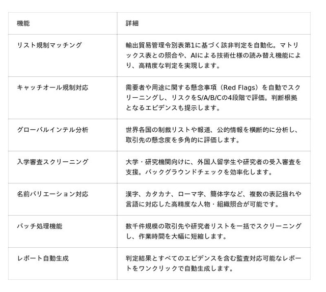 (*)日本の安全保障輸出管理(リスト規制・キャッチオール規制)に特化したAIエージェントとしては世界初のサービス(2026年3月現在当社調べ)