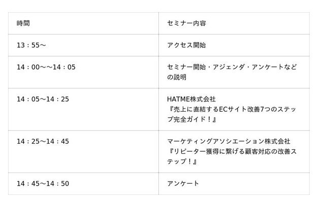 マーケティングアソシエーション株式会社の子会社であるHATME株式会社(本社:東京都台東区 代表取締役:中園広和、以下当社)は2026年3月26日(木)にマーケティングアソシエーション株式会と、2社共催ウェブセミナー「勝てるECは“改善8ステップ”で動いている 運営改善を仕組み化したいEC担当者の実践講座」を、開催いたします。