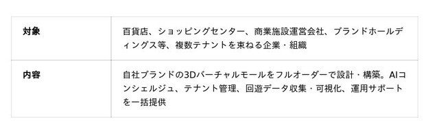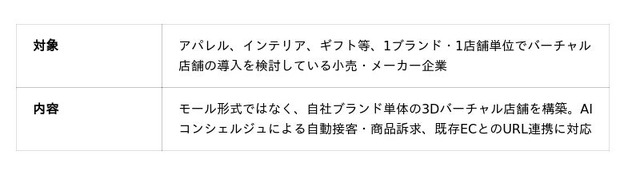 本機能により、従来のECでは難しかった"プッシュ型の接客(声かけ・提案・気づきの提供)"がオンライン上で可能になります。加えて、実写寄りのリッチな3Dバーチャル空間と組み合わせることで、単なる商品一覧ではない"商空間の体験"を提供し、デジタルツインの商空間をオンライン上に構築することを目指します。