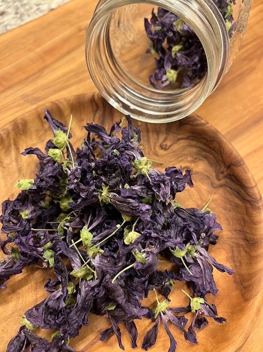マロウブルーは、和名「ウスベニアオイ」の名でも知られている。ヨーロッパ原産のアオイ科ゼニアオイ属の二年草です。花はハーブティーとして利用されており、お湯を注ぐと透き通った青いお茶になります。そこにレモンを浮かべると美しいピンク色に変わることから「夜明けのハーブ」とも呼ばれています。今回、工藤静香さんのお庭で育てられ、静香さんが一つ一つ手摘みして乾燥させたものをエキスにして美容液(下層)に使用しました。