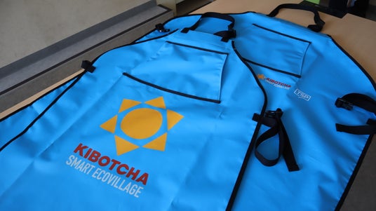TSP太陽が所属する太陽グループのグループ企業であり、大型膜面構造物(テント構造物)や土木・物流資材などを手がける太陽工業株式会社(東京本社:東京都世田谷区、代表取締役社長:能村 祐己)の製造ラインで生じたテント膜材をアップサイクル。耐水性に優れた作業用エプロンとして再生しています。贈呈した大人用26枚と子ども用47枚のエプロンは、牡蠣の殻を剥く作業時や、子どもの職場体験等のシーンで活用される予定です。