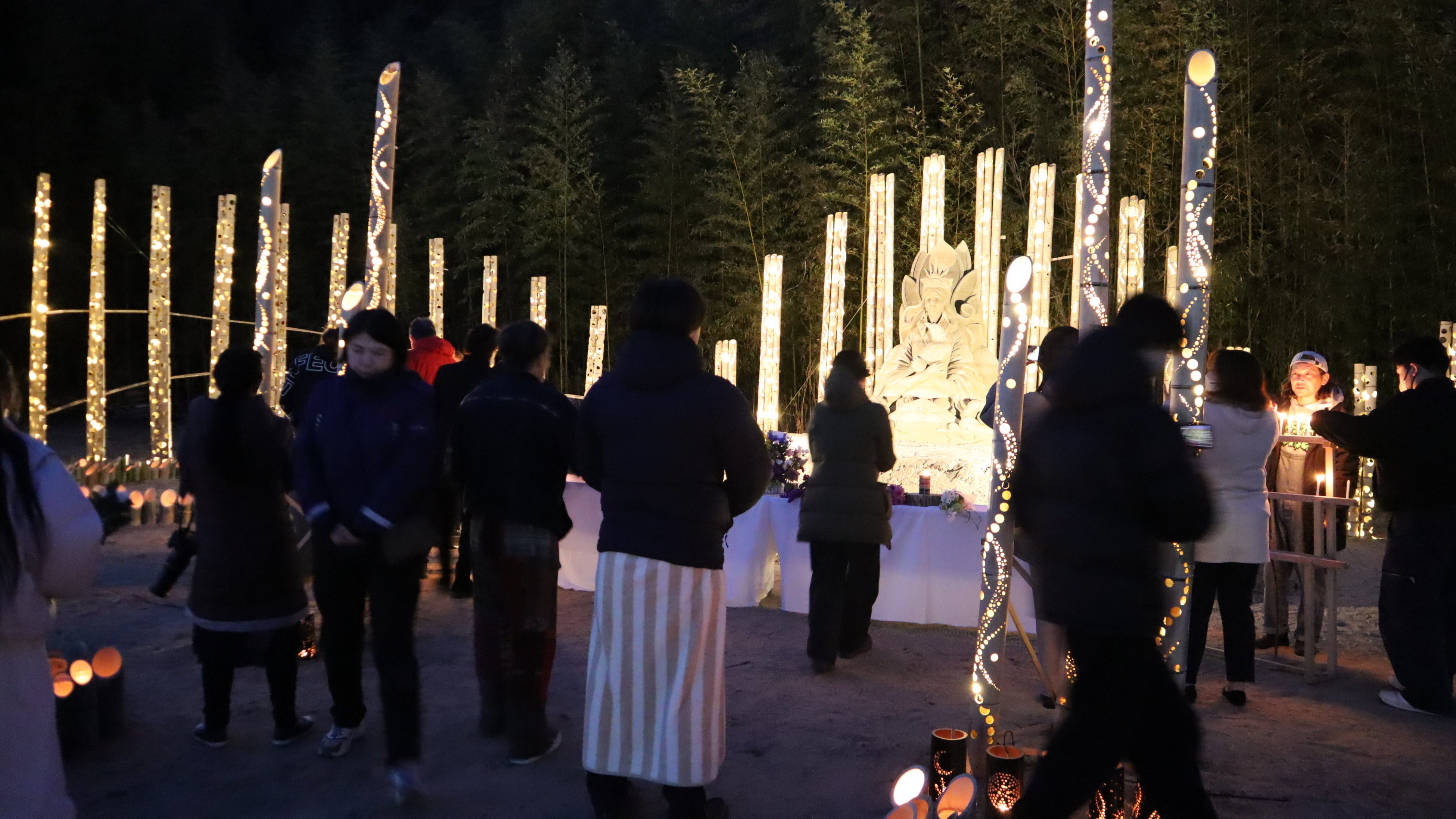 集う方々が暖をとれるようテント空間を提供するなど、慰霊祭の準備設営もサポートいたしました
