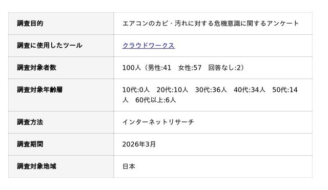 エアコンのカビ・汚れに対する危機意識に関するアンケート調査の概要