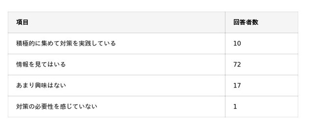 - エアコンのカビについて情報収集して積極的に対策している人は10%にとどまっている。