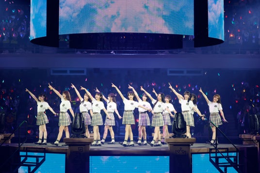 もともと趣味でギターを弾いていた中、この日に向けて練習を重ねたという江角は「ロックにカッコよくできたと思います!」と胸を張る。そして客席のファンに向けて深い感謝の思いを伝えた。この流れで披露されたのは、本公演に向けて書き下ろされた新曲『「僕たちの歌」』。メンバーは歌詞に込められたポジティブなメッセージを届け、温かい拍手が鳴り響く中ステージをあとにした。
