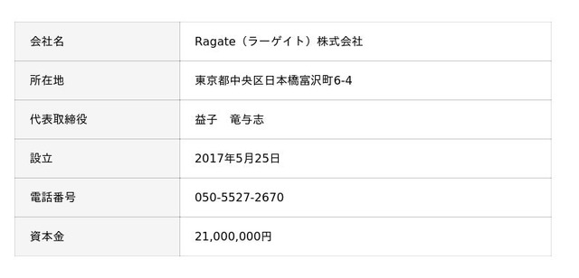 Ragate(ラーゲイト)株式会社 代表取締役 益子 竜与志