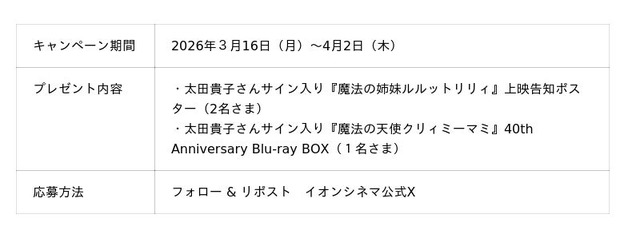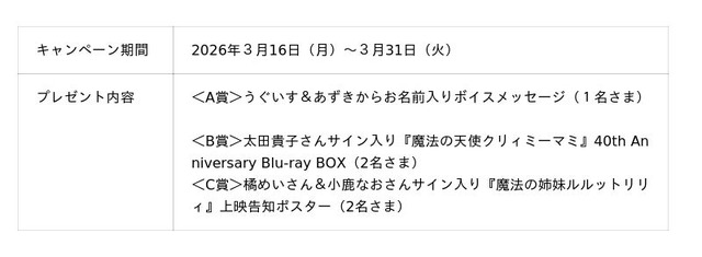『魔法の姉妹ルルットリリィ』の先行上映を記念して、抽選でプレゼントが当たるWキャンペーンを実施中です。