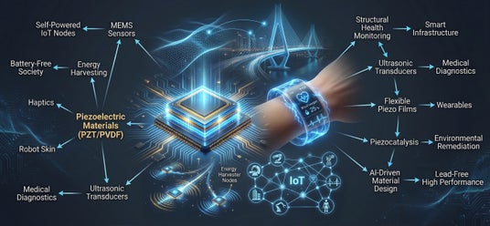 超音波イメージング用PMUT・圧電ナノ材料によるがん治療(ピエゾダイナミック・ケモダイナミック・フォトサーマル統合)・神経刺激インターフェース・超音波駆動型ドラッグデリバリー・筋骨格系再生医療スキャフォールドなど、圧電技術の医療応用フロンティアが体系的に収録されている。