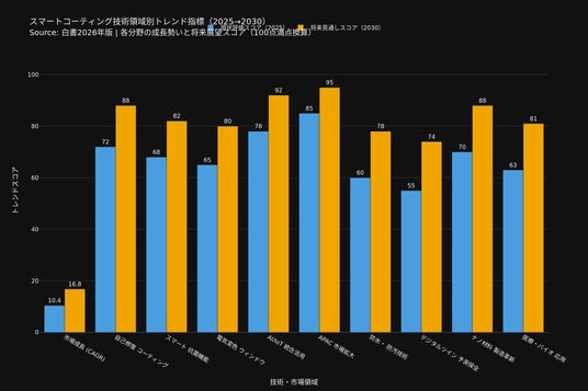 本白書は、自己修復コーティング・エレクトロクロミック材料・防氷機能・バイオインスパイアード表面・AI/IoT統合という5大技術群を網羅しており、研究開発から商業化・投資判断まで一貫した知識基盤を提供する。