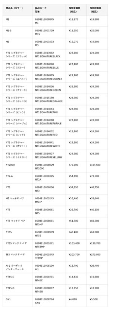 ※「NT1(第5世代)シルバー/ブラック」「M2」「K2(国内未発売)」「NTK(国内未発売)」については、価格の変更はございません。