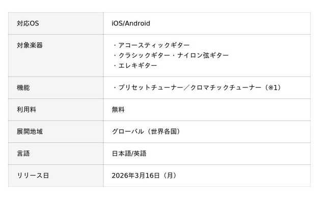ヤマハ株式会社(以下、当社)は、楽器演奏者が演奏前や練習の場面で、より快適に演奏に向き合える環境づくりを目指し、ミュージックツールアプリの開発・提供をしています。その取り組みの一つとして、3月16日(月)より、スマートフォンで手軽にチューニングできるギターチューナーアプリ『Tuner for Guitar(チューナー フォー ギター)』の提供を開始しました。