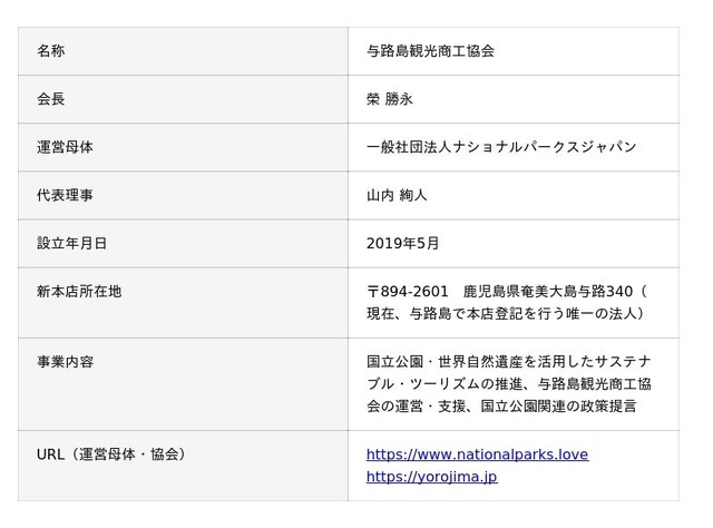 与路島観光商工協会(会長:榮勝永・運営母体:一般社団法人ナショナルパークスジャパン)およびその構成員である株式会社TARGET JAMM(代表取締役社長:ジュリアン・ジーリ)は、与路島活性化の取り組みをさらに強化するため、運営母体である一般社団法人ナショナルパークスジャパン(代表理事:山内絢人)の本店登記場所を北海道川上郡弟子屈町から鹿児島県大島郡与路島へ移転しました。