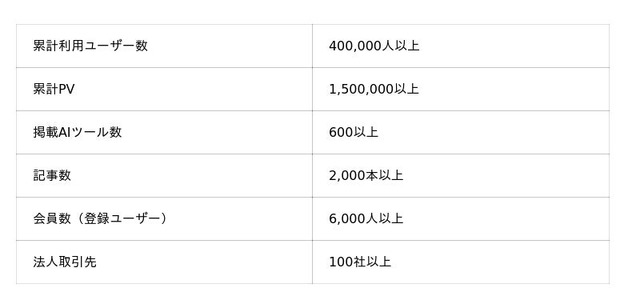 AIツールギャラリーは、2024年1月のサービス開始から2年で以下の実績を積み上げてきました。