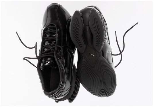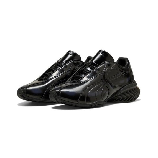 本コレクションの中心となるのは、プーマのクッショニングテクノロジー「CELL(セル)」を再解釈したシューズ「CELL GEO(セル ジオ)」です。カラーは、パテントレザーを採用した「Ombre(オンブレ)」と「Midnight(ミッドナイト)」の2色展開。アッパーのトップレイヤーは、着用を重ねることで徐々にフェードし、1足ごとに異なるグラデーションが現れる仕様となっており、履き込むほどに表情が変化するデザインに仕上げられています。幾何学的なデザインを取り入れたこのモデルは、2026年に向けたCELLクッショニングの新たな表現を提示します。