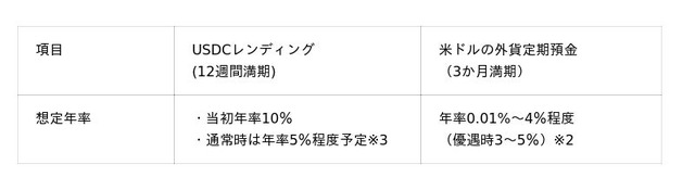※3 マーケット環境により年率は変動します。状況に応じ新規募集を停止することがあります。また、USDCレンディングは、外貨預金ではありません。