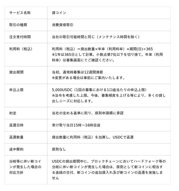 なお、当社は、お客さまより借り入れたUSDCを転貸することがありますが、当該USDCの転貸取引の管理は当社が全ての責任を負うため、当社が破綻しない限りにおいて、お客さまに影響が及ぶことはありません。