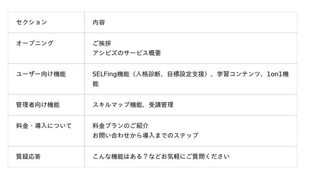 本セミナーでは、アシビズのユーザー向け機能と管理者向け機能を、実際の画面を交えてご紹介します。後半では、料金プランや、導入までの具体的なフローについても解説いたします。【セミナー詳細】