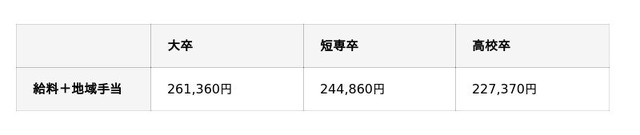 ◆初任給 初任給月額(条例上の本則)は次のとおりですが、給料のほかに地域手当、扶養手当、住居手当、通勤手当、時間外勤務手当、期末手当及び勤勉手当等が条件に応じて支給されます。民間企業等で職務経験がある場合は、経歴加算をした給与を支給します。