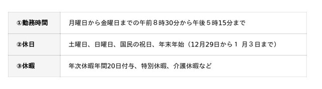 ※配属先等により、勤務時間や休日が異なる場合があります。