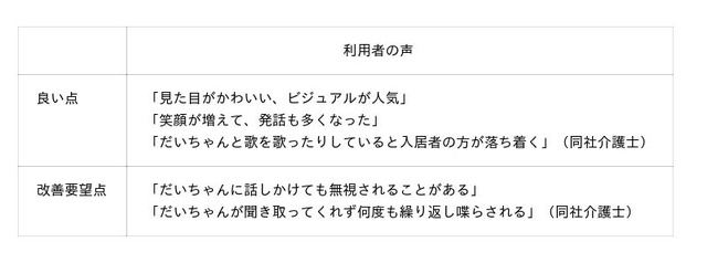 将来的には家族の声を学習し、その声色で話しかける機能の追加も視野に入れている。