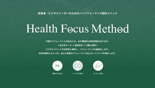 Health Focus Method for Corporateは、身体とマインドの両面から人と組織の状態を構造的に見立て、再現性あるパフォーマンス設計を支援するメソッドです。