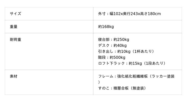 本製品は、側面がアーチ状で丸みのあるかわいらしいデザインを採用したロフトベッドです。