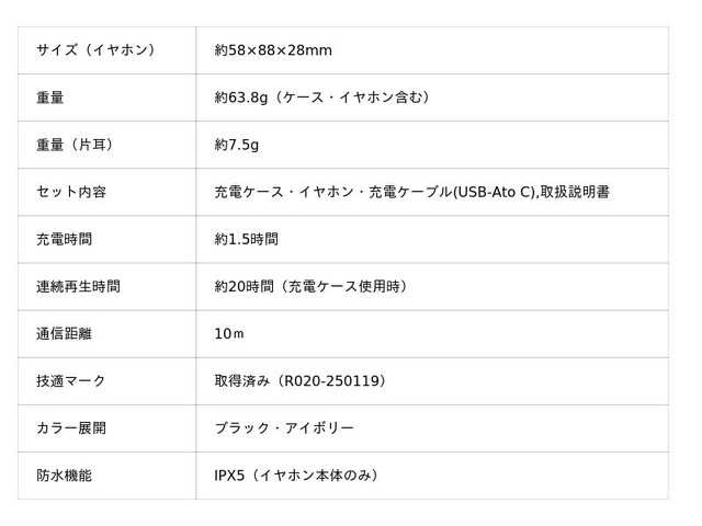 主な用途:ながら聴き(ながら聴き・ビジネス・学校・フィットネス・睡眠)・通話
