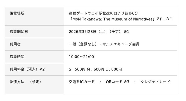 ※2 荷預けの予約をする場合、別途料金(500円)が必要です。利用料金は変更になる場合があります。金額は税込みです。