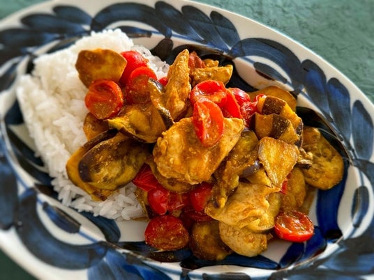 ボウルひとつ、レンチンでできる軽やかカレー「ささみとなす、トマトのカレー 」(c) 山脇りこ
