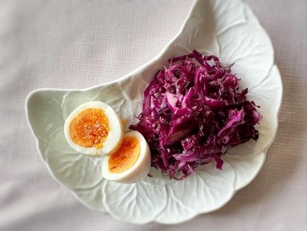 ゆで卵を添えれば軽い食事になる「紫キャベツの甘酢漬け」(c) 山脇りこ
