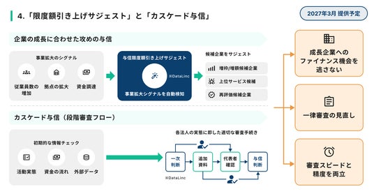 4. 企業の成長に合わせた攻めの与信を実現する「限度額引き上げサジェスト」と「カスケード与信」(提供予定時期:2027年3月)