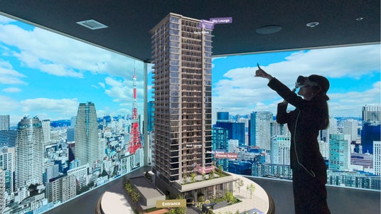 ● 圧倒的な没入感:建物の高さを仰ぎ見る外観確認から、竣工前の室内を見渡す内覧体験までを、圧倒的な臨場感とともにシームレスに提供。