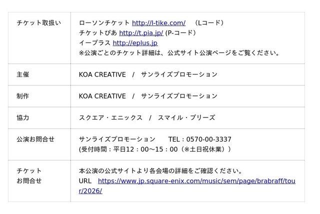 公式サイト https://www.jp.square-enix.com/music/sem/page/brabraff/tour/2026/