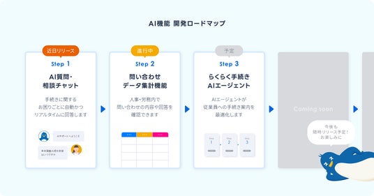 「AI質問・相談チャット」を皮切りに、現場のお悩みの声から開発したAI機能をリリース予定であり、今後も人事・労務の皆様が、より重要度の高い業務に集中できる環境をつくれるよう支援してまいります。