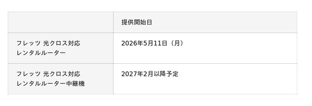 メッシュWi-Fiを利用できる「フレッツ 光クロス対応レンタルルーター中継機」は、後日提供開始予定となります。