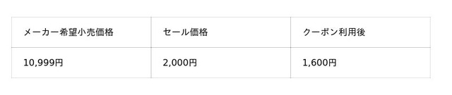 通常 10,999 円の商品が、クーポン利用で たった1,600円 で手に入ります。
