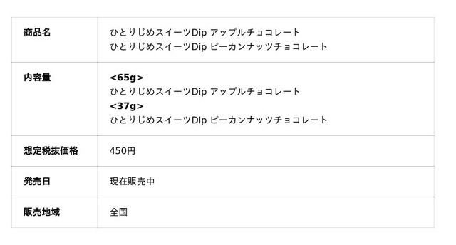ひとりじめスイーツDipアップルチョコレート(左)、ひとりじめスイーツDipピーカンナッツチョコレート(右)