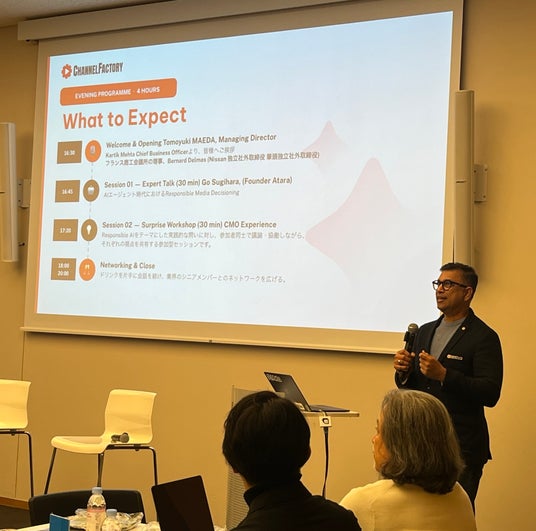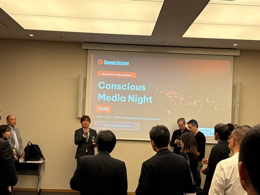 グローバルにコンテキスト広告事業を展開し、ウォールドガーデン環境におけるパフォーマンス最大化を支援する株式会社Channel Factory Japan(マネージングディレクター:前田 智之)は、2026年3月25日に在日フランス商工会議所で「Conscious Media Night 2026」を開催しました。このイベントでは、「AIエージェント時代におけるResponsible Media Decisioning(社会的責任あるメディア意思決定)」というテーマのもと、「CMO Experience by イノベーション・ハブ」をローンチしました。 本イベントには70名以上の参加者が集まり、AI時代におけるメディア戦略についての多角的な議論が行われました。イベントでは、エキスパートスピーカーとしてアタラ創業者の杉原剛氏を迎え、メディア戦略と意思決定に関する深い洞察がシェアされました。また、全ての参加者が“CMOの視点”から議論を行い、実践的な知見を得る機会を持ちました。 乾杯のご発声をいただいた電通ジャパン・インターナショナルブランズの星貴也様をはじめ、参加者同士の活発な交流が促進され、業界横断での新たな連携の可能性が見出されました。参加者からは「AI時代における意思決定の本質について考える貴重な機会だった」や「新しい仲間との出会いがあった」という声が寄せられ、テーマへの関心の高さが伺えました。 今後もChannel Factory Japanは、CMO Experienceを通じてコミュニティの形成、知見の共有、メディア意思決定の高度化を推進し、日本市場におけるイノベーションの創出に寄与してまいります。