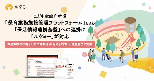 「保育業務施設管理プラットフォーム」は、給付や監査などの保育業務において、行政機関に一度提出した情報は二度提出しなくてもよい、という考えの「ワンスオンリー」の実現に向けて、保育施設などと自治体間のオンライン手続きを行う全国的な基盤です。これまで紙やアナログで行われていた申請や報告を電子化し、公定価格に係る給付情報の自動計算や自動審査、エラーチェックなどの機能を実装することで、自治体と保育施設双方の抜本的な業務負担軽減と効率化を目的に、2026年度より開始されます。なお、ルクミーは保育ICT提供業者として、「保育業務施設管理プラットフォーム」とのAPI連携を通じ、抜本的な業務負荷軽減および保育現場における「時間」と「心」のゆとりの創出を目指します。