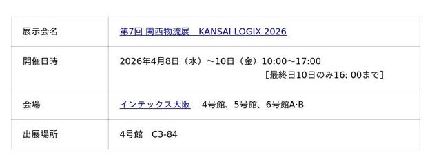 株式会社空調服(本社:東京都板橋区、代表取締役社長:市ヶ谷 透)は2026年4月8日(水)~10日(金)までインテックス大阪にて開催される『第7回 関西物流展』に出展いたします。