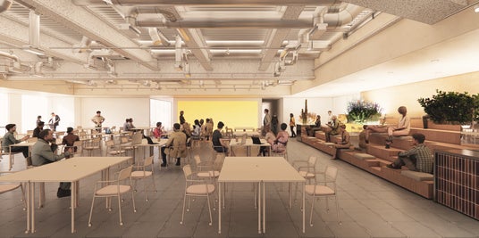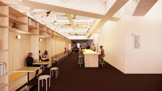 社員同士の偶発的な出会いからコミュニケーションが生まれる、執務席までの動線上に配置されたラウンジ空間「CONNECT STREET」