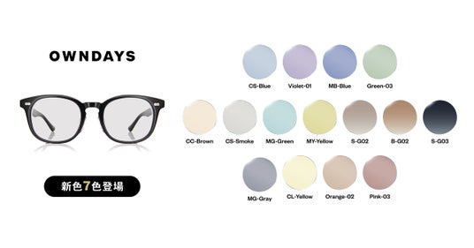 近年、紫外線対策やまぶしさ軽減への意識の高まりを背景に、サングラスやカラーレンズの需要が拡大しています。また、目元の印象を手軽に変えられるファッションアイテムとして、日常に取り入れる動きも広がっています。一方で、「サングラスは目立つ」といった理由から、日常使いにハードルを感じる声も依然として存在します。OWNDAYSでは今回、新たにCC-Brown、MY-Yellow、MG-Green、CS-Smoke、S-G02、B-G02、S-G03の7色を追加し、カラーレンズのラインアップを拡充しました。視界を快適にサポートする機能的なカラーから、コーディネートのアクセントとなるカラーまで幅広く取り揃え、ライフスタイルやファッションに応じた選択が可能です。