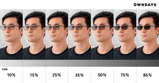 OWNDAYSでは、カラーレンズの色だけでなく濃度でも選ぶことができます。レンズの濃度は「可視光線透過率」に関係しており、色味の濃度が高いほど光の透過を抑えることができます。カラーと濃度の組み合わせにより、シーンに適した“見え方”を選ぶことが可能です。OWNDAYSは、ご利用シーンに合わせた色の濃さの提案も可能ですので、日常にフィットするアイウェアの選び方をぜひスタッフにご相談ください。