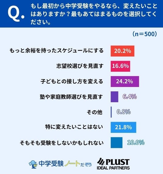 質問4:もし最初から中学受験をやるなら、変えたいことはありますか?最もあてはまるものを選択してください。